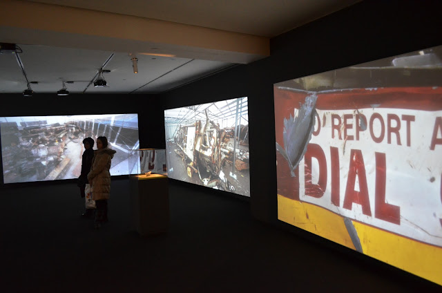 to pochopitelná součást výstavy, ale nijak působivá pro mě nebyla. Nejmenovaná newyorská odbornice na umění ji přísně označila za "zbytečnou"... Své kouzlo ale artefakty měly, například lodička z papíru nalezená v troskách dvojčat.